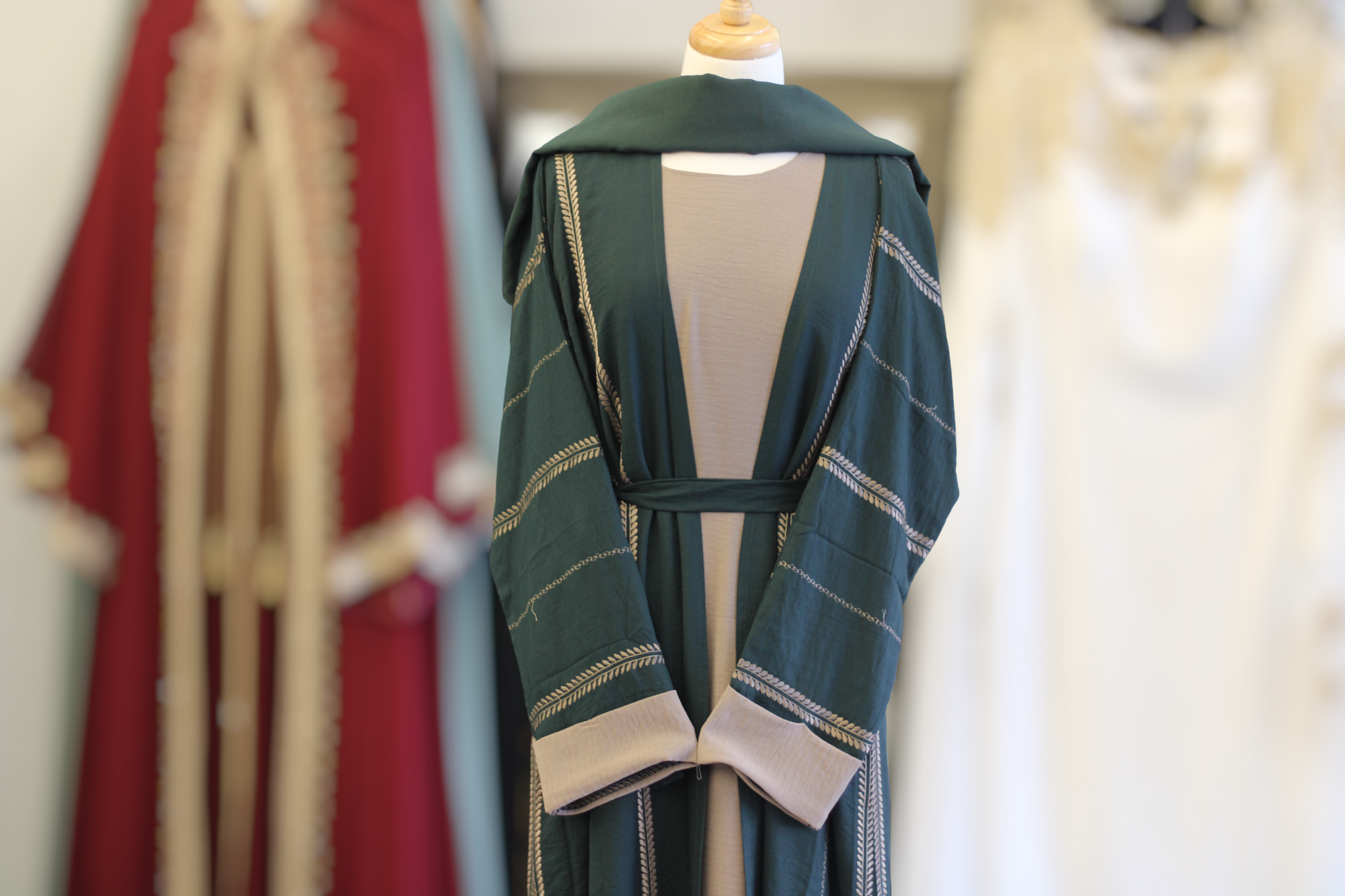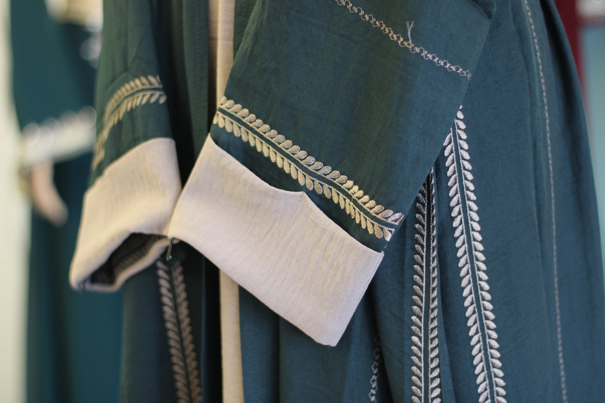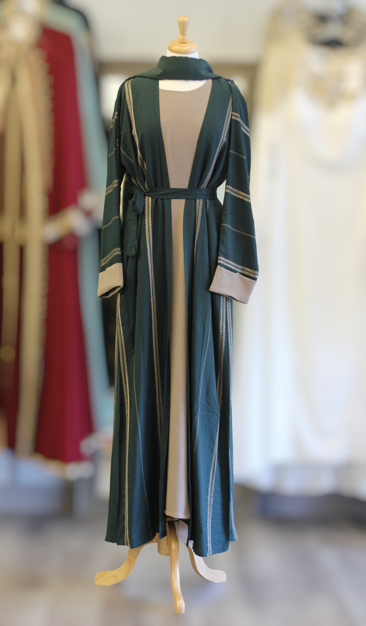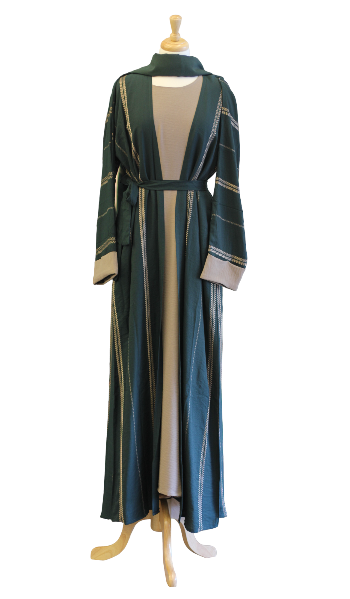 Elegant Green & Nude Dubai Abaya 2-Piece Set – Premium Fabric & Matching Scarf