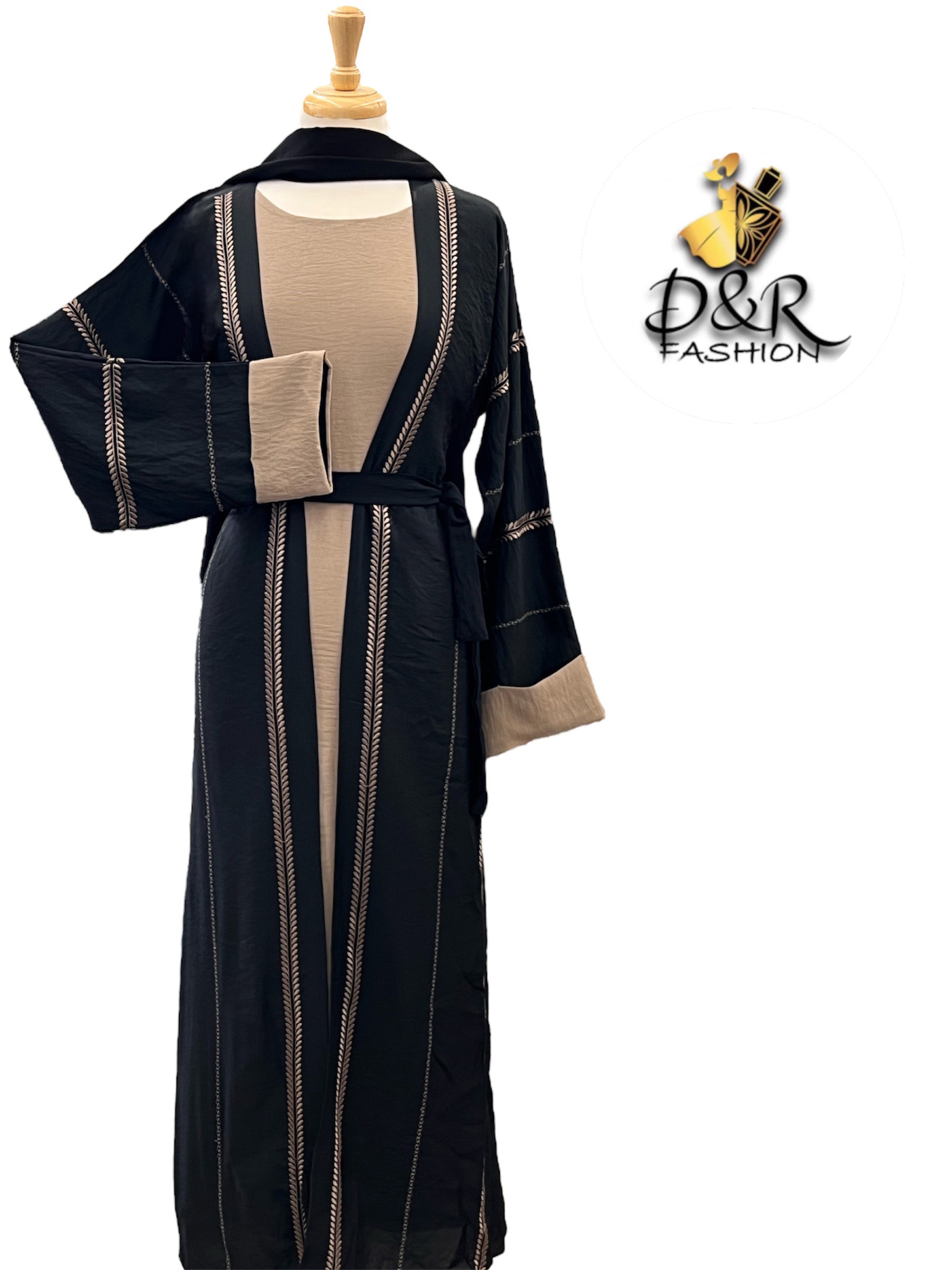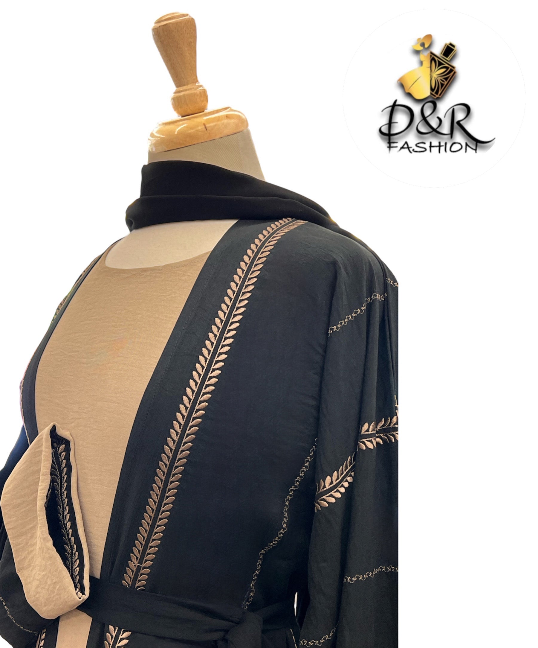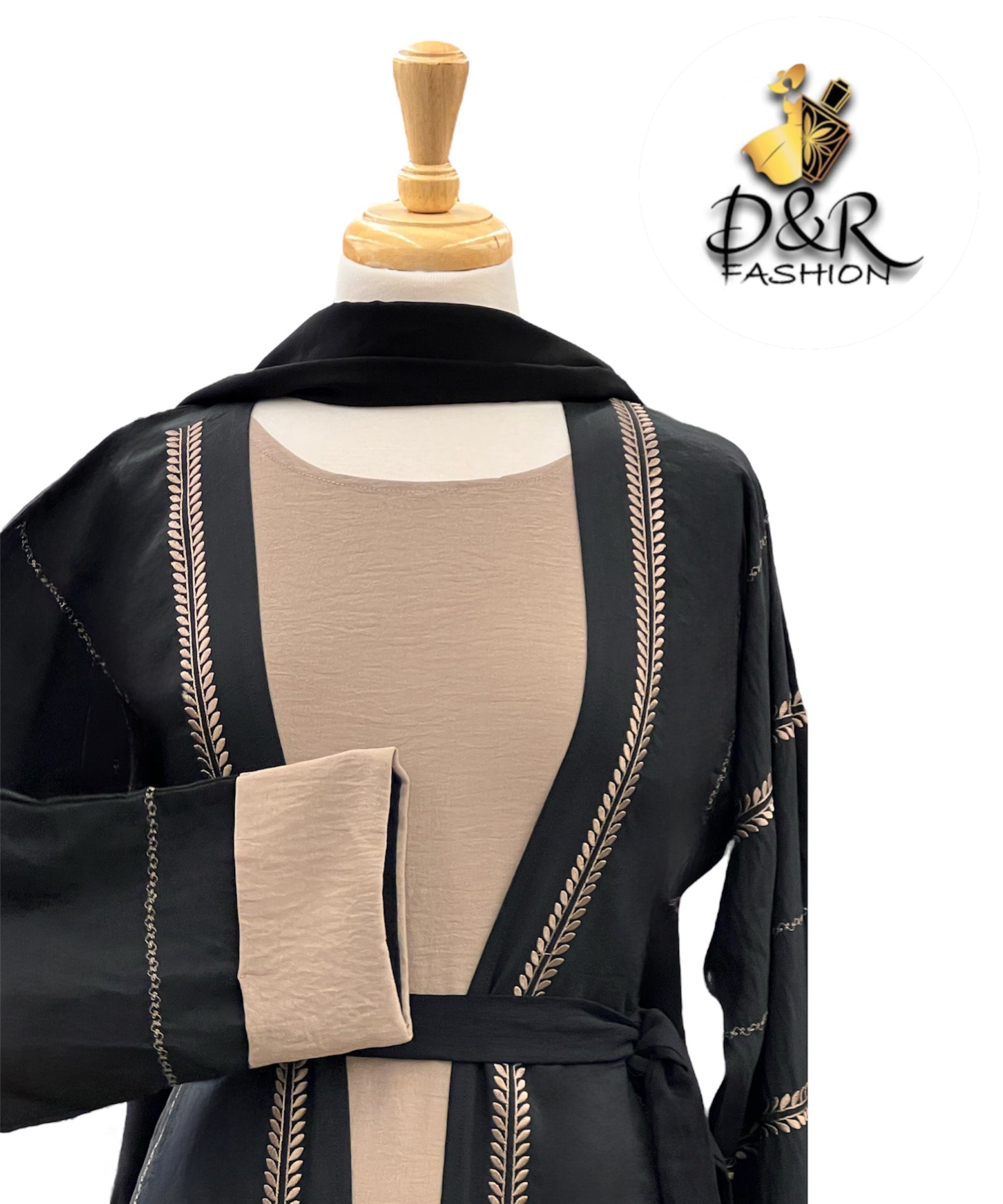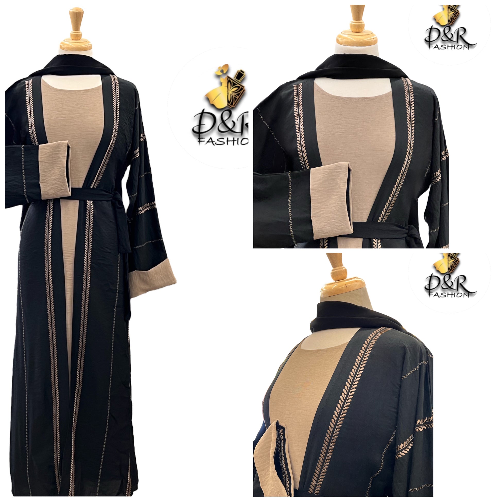 Dubai Abaya 2 Piece Set Made of High Quality Fabric Comes with a matching colors Short sleeves Dress a Scarf and belt.