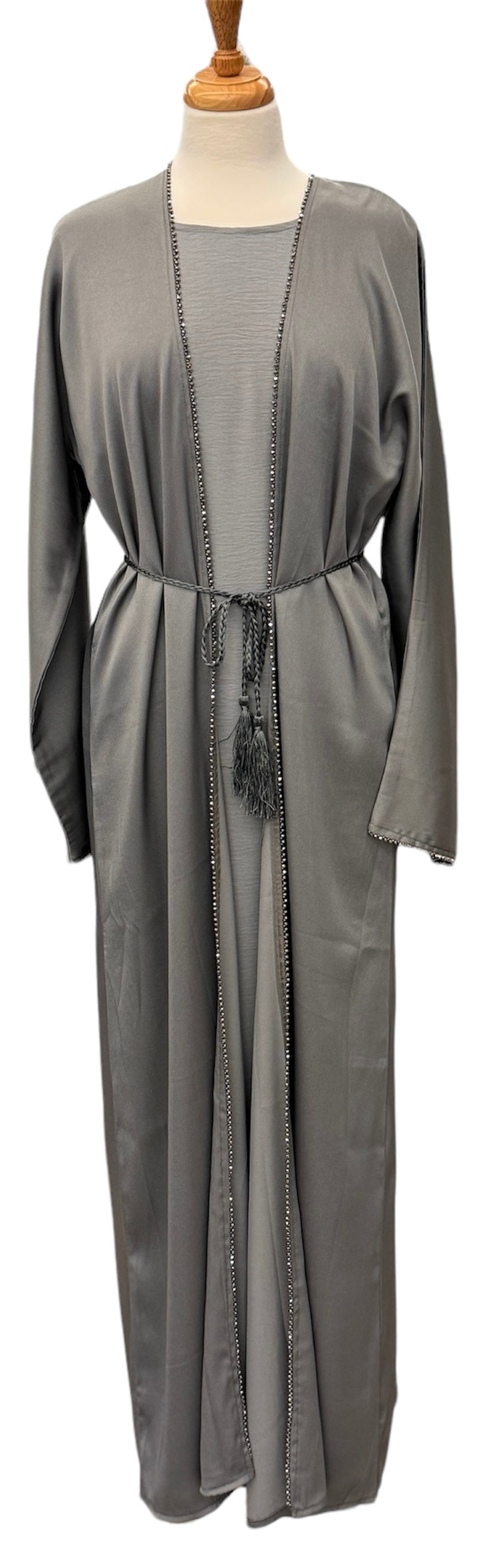 Elegant Satin Abaya Set | Two-Piece with Hijab & Belt